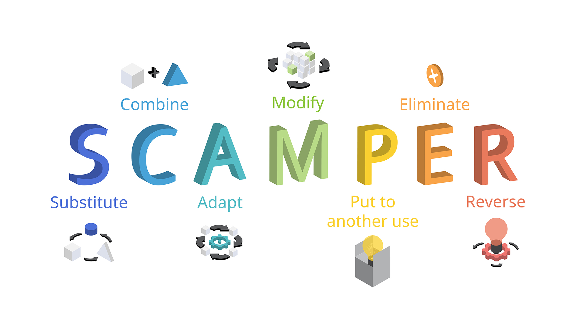 Técnica de generación de ideas basada en aplicar 7 acciones diferentes a un reto existente.