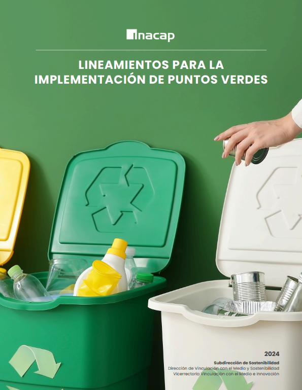 Documento desarrollado por la unidad de Sostenibilidad, en colaboración con la Gerencia de Desarrollo Inmobiliario e Infraestructura, Dirección de Operaciones y Unidad de Seguridad, Salud Ocupacional y Medio Ambiente. Esta guía busca entregar en términos claros y concretos, orientaciones para la implementación y gestión de Puntos Verdes en Sede.