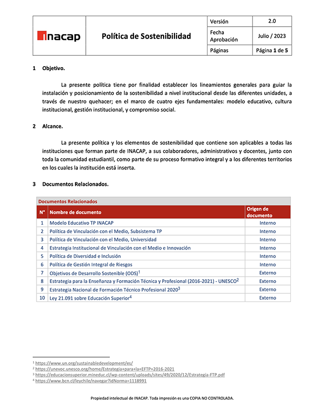 Documento que tiene por finalidad establecer los lineamientos generales para guiar la instalación y posicionamiento de la sostenibilidad a nivel institucional.