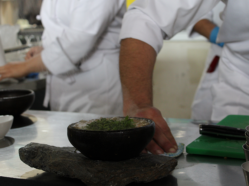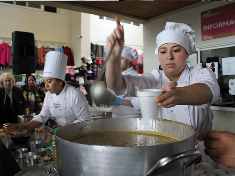 Estudiantes y docentes de Gastronomía elaboraron y compartieron preparaciones típicas con el público reunido en el recinto ubicado en calle Errazuriz 1300, tales como sopa de cholgas y receta de murta con membrillo, destacando los sabores y aromas propios de la cocina nacional.