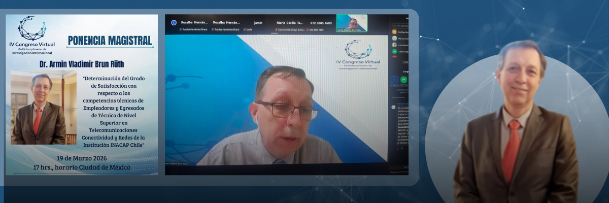 Con el objetivo de aportar a la discusión académica internacional sobre la formación técnico profesional y su vínculo con el mundo laboral, el docente Armin Brun fue invitado a presentar una Ponencia Magistral en el IV Congreso Virtual Multidisciplinario de Investigación Internacional, organizado por la Revista RIMI junto a la Universidad Americana de Europa (UNADE) y diversas redes académicas internacionales.