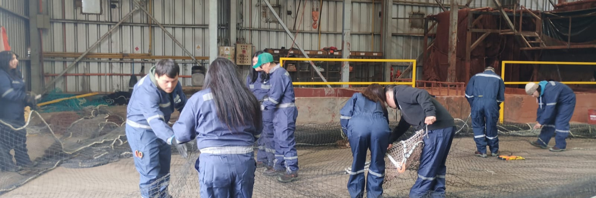 Durante la capacitación, los y las participantes adquirieron las competencias necesarias para aplicar técnicas de confección y reparación de redes acuícolas, incorporando estándares de calidad y cumpliendo con las normas de seguridad y cuidado ambiental que demanda la industria.