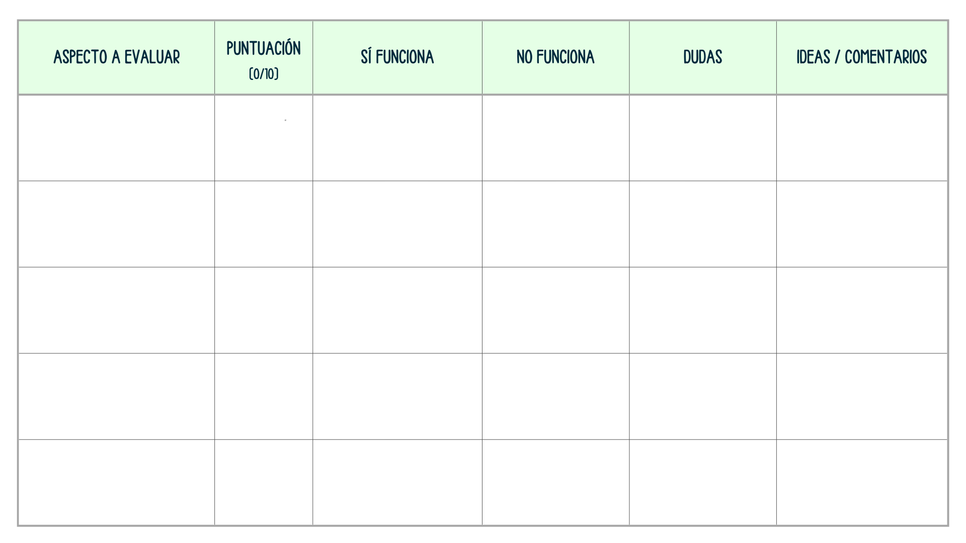 - Funciona/No Funciona: documentar lo que funciona bien y lo que no funciona según las experiencias de los usuarios.