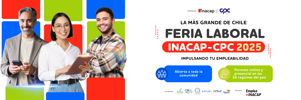 Entre el 3 y el 7 de noviembre de 2025 se desarrollará la 17ª Feria Laboral INACAP-CPC, el mayor encuentro de empleabilidad del país. La actividad se llevará a cabo en modalidad online durante toda la semana y contará, además, con dos jornadas presenciales los días 4 y 5 de noviembre en las 16 regiones de Chile, entre las 9:00 y las 16:00 horas. En la Región Metropolitana, la cita será en la Sede INACAP Santiago Sur.