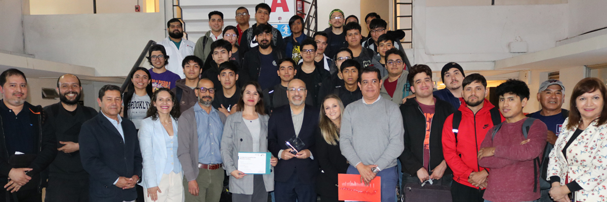 La ejecutiva fue acompañada por el jefe de Proyectos, Alianza CCM-ELEVA, Patricio Garrido y por la jefa de Comunicaciones, Alianza CCM-ELEVA, Lía Ríos, mientras que la ceremonia fue encabezada por el Vicerrector INACAP Arica, Marcelo Riquelme; por la Directora Académica, Catherine Zúñiga; Director de Carrera Automatización y Robótica, Cristian Moscoso y por los estudiantes y docentes de la Carrera.