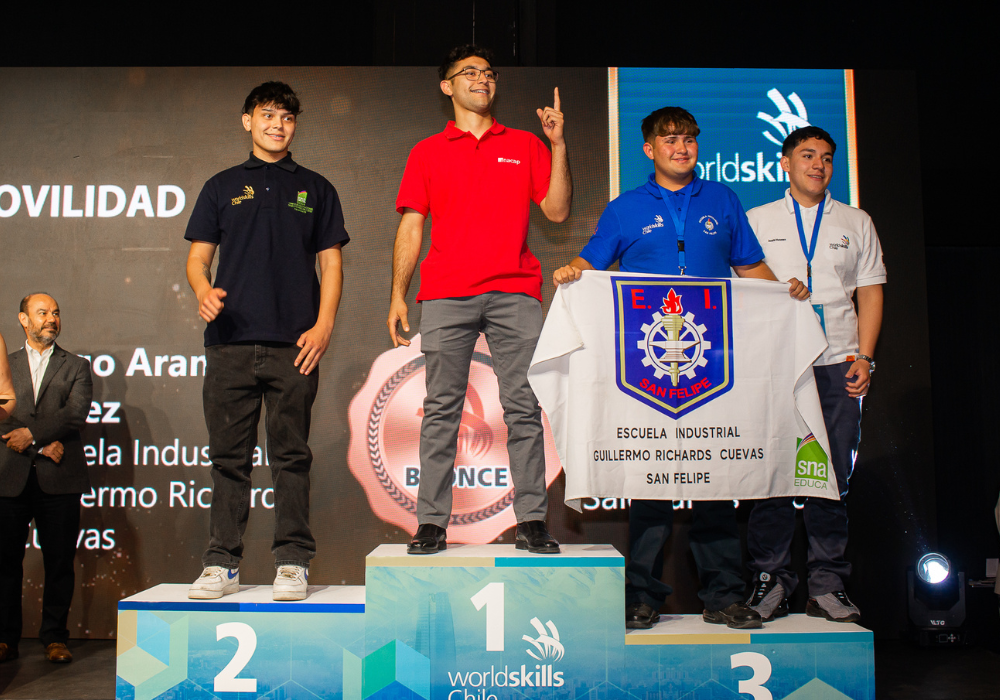 En relación con los resultados entregados en la Ceremonia de Premiación realizada el sábado 8 de noviembre, nuestra sede celebró el primer lugar de Álvaro Rodríguez Bustos en la disciplina de Electromovilidad y un tercer lugar para Leonardo Barrientos Reyes en Mecánica Automotriz, ambos estudiantes de INACAP Sede Renca, reflejando el alto nivel de preparación, compromiso y dedicación de nuestros estudiantes y docentes que participaron en esta experiencia formativa de alcance internacional.