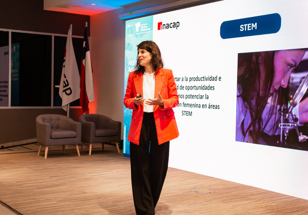 Asimismo, durante el jueves 6 y viernes 7 se desarrolló la Conferencia WorldSkills 2025, instancia que contó con la participación de destacados expositores nacionales e internacionales. Una de las ponencias más destacadas fue la de Catalina Iglesias, Vicerrectora Académica y de Innovación de INACAP, quien abordó el tema de Mujeres STEM, destacando la importancia de promover la participación femenina en las áreas científico-tecnológicas. “WorldSkills ha sido una verdadera fiesta TP, con competiciones simultáneas de las Américas y de Chile. En mi presentación quise enfatizar que hablar de mujeres en STEM hoy en día es más que hablar de una causa: es hablar de productividad, de igualdad de oportunidades. En INACAP, presentes en todas las regiones de Chile y con una amplia oferta de carreras STEM, tenemos algo que decir y mucho que hacer al respecto. No podemos quedarnos abajo de este tren de transformación. Hay cada vez más programas de apoyo y las instituciones saben lo relevante que es la inclusión femenina en estas áreas. Así que mi mensaje es claro: atrévanse a seguir su vocación”, señaló Iglesias.