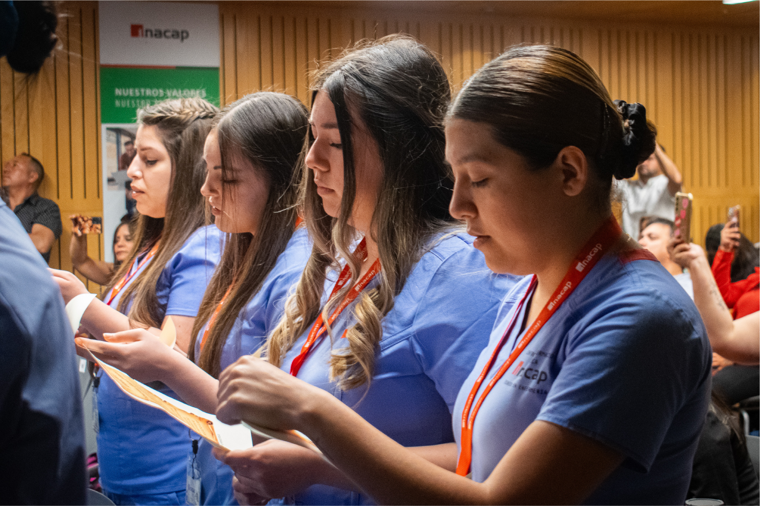 ‘‘Las actuales necesidades de salud de las personas, la familia y la comunidad, requieren de técnicos altamente calificados y con vocación de servicio, técnicos responsables, disciplinados y comprometidos con su quehacer, cumpliendo fielmente indicaciones, normativas, y protocolos vigentes’’, señaló Blanca Dinamarca, Directora de Carrera Área Salud INACAP Santiago Centro, enfatizando en la importancia esta nueva etapa, en donde los estudiantes se comprometen a desempeñar sus labores con dedicación, respeto y responsabilidad.