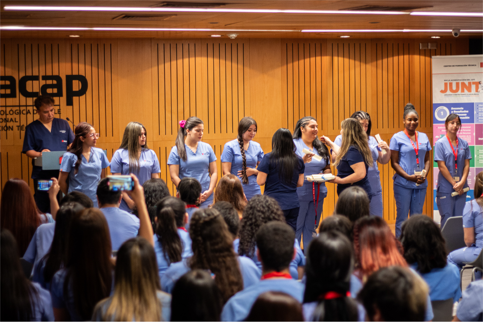 ‘‘Para nosotros es muy importante cumplir este hito en las carreras del Área Salud que tenemos en Sede Santiago Centro, en donde ellos ponen en valor cada una de las competencias adquiridas e incursionan en el campo clínico de sus carreras’’, señaló Cecilia Iglesias, Vicerrectora INACAP Santiago Centro.
