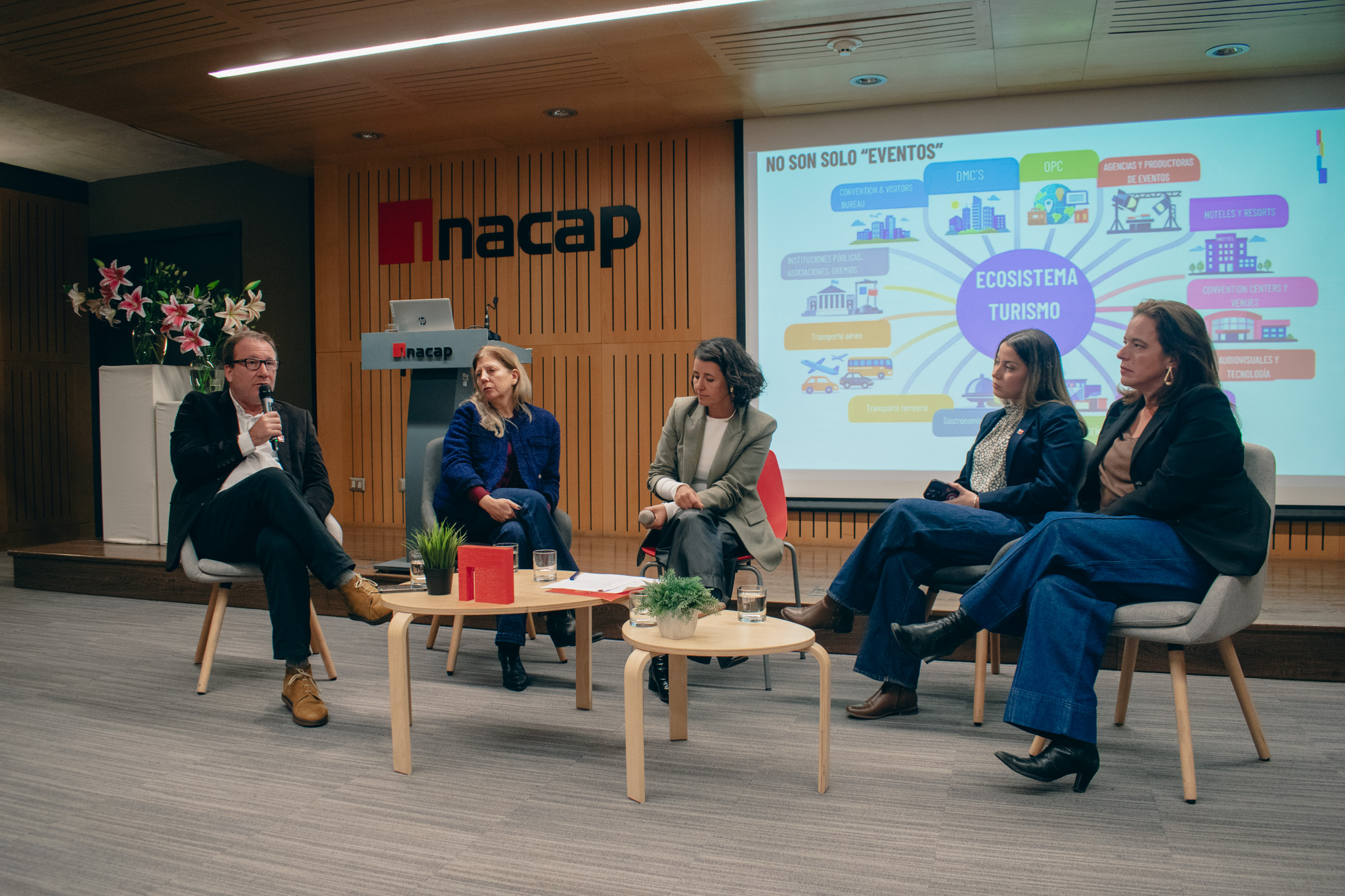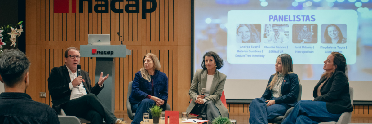La jornada continuó con el panel de conversación “¿Cómo se mueve el turismo MICE en Chile y el mundo?”, que contó con la participación de destacados representantes del sector: Ismi Urbano, líder de congresos en centros de eventos de GL Events; Andrea Svart, directora comercial de Hoteles Cumbres; Claudio Sances, encargado de Turismo MICE en SERNATUR; y Magdalena Tapia, directora ejecutiva de Click Latam y presidenta de Essence Latam. La instancia fue moderada por Beatriz Román, Directora del Área Turismo y Hospitalidad de INACAP.