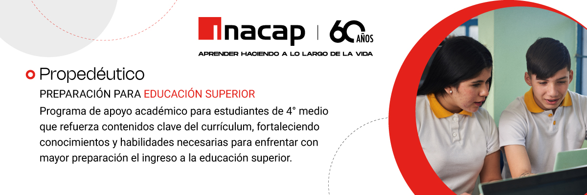 Programa orientado a estudiantes de 4° Medio que buscan fortalecer sus conocimientos y habilidades para enfrentar con éxito los desafíos propios del ingreso y permanencia en la Educación Superior. El programa consta de 12 sesiones los días sábado, presencialmente en todas las sedes de INACAP, en las cuales se espera que los alumnos logren reconocerse como sujetos activos y conscientes de sus trayectorias de aprendizaje.