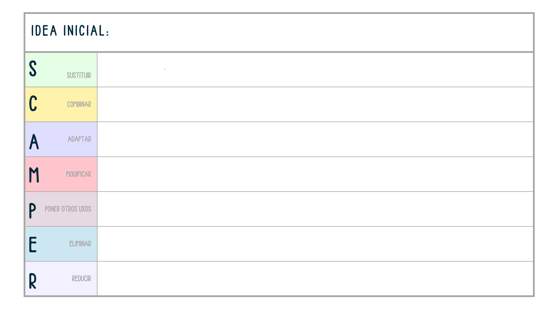 Técnica de generación de ideas basada en aplicar 7 acciones diferentes a un reto existente: