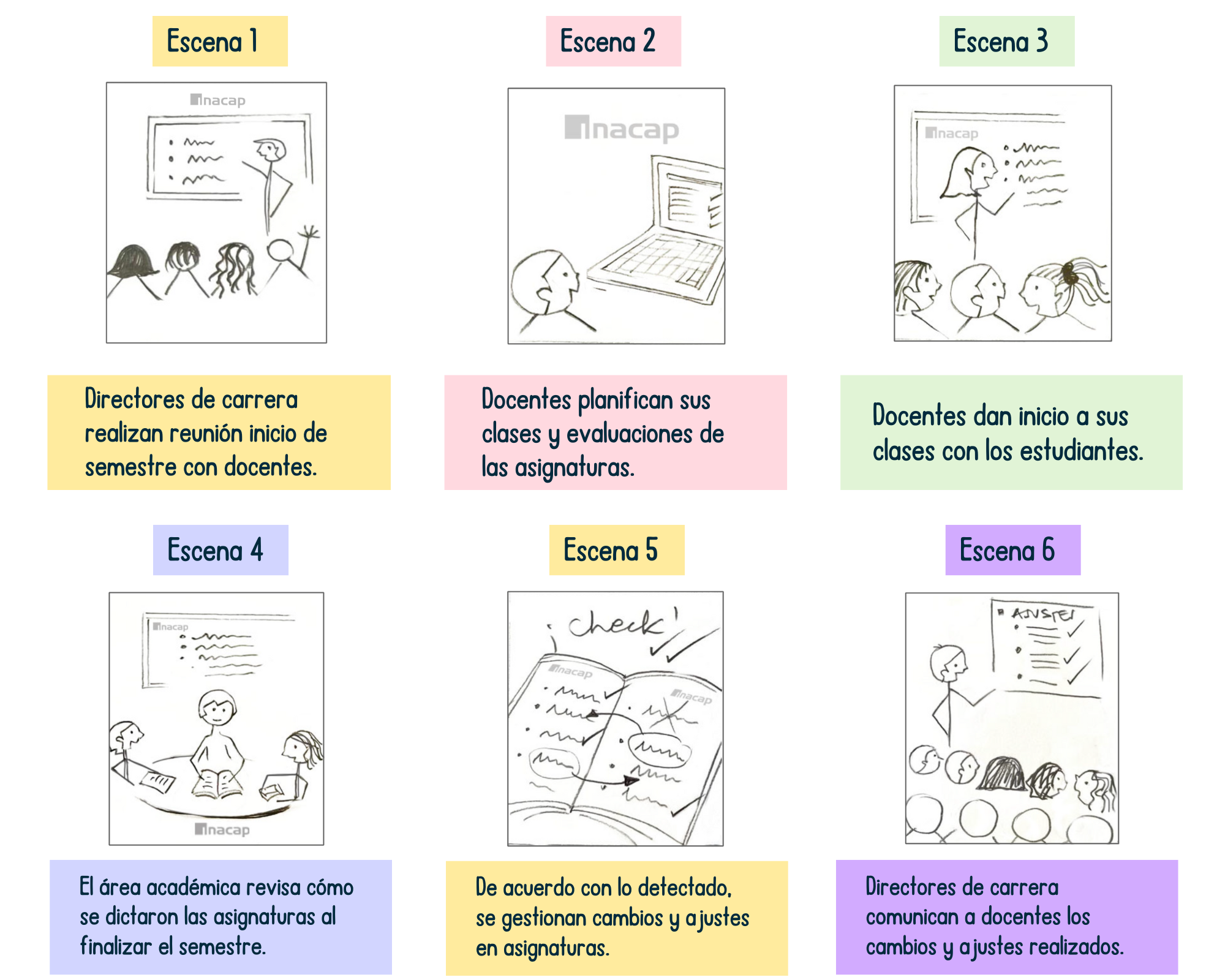 - Crear escenas clave: dibujar, usar figuras o gráficos para mostrar todas las escenas que representan los momentos críticos del proceso propuesto.